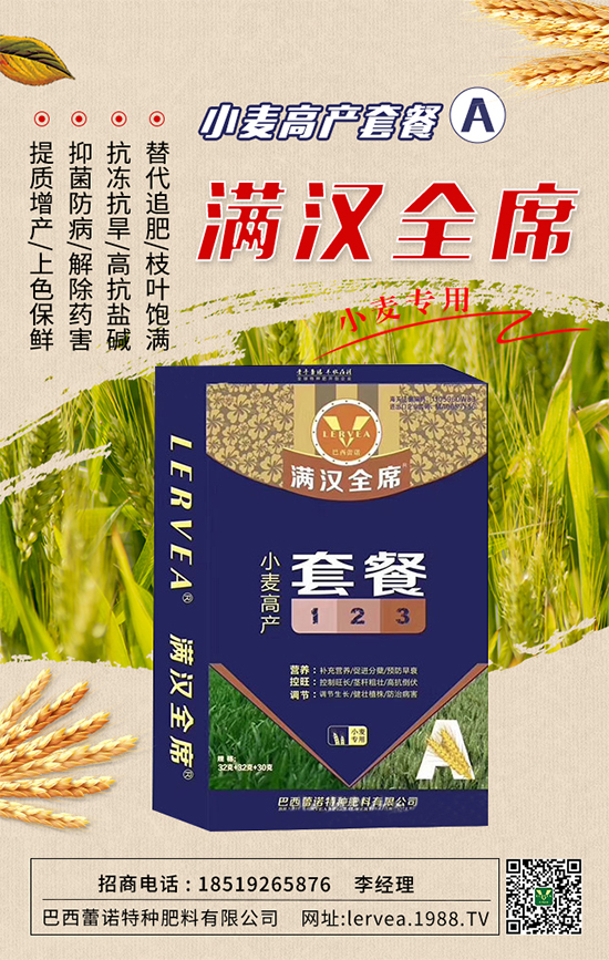 3、抓住小麥返青拔節(jié)的有利時機,及時采取促控措施,促進弱苗轉(zhuǎn)化,提高成穗率;控制旺長田塊,預防后期貪青倒伏。今天,小編為大家?guī)硪豢畎臀骼僦Z特種肥料有限公司的產(chǎn)品--小麥高產(chǎn)套餐A,能夠補充小麥生長的各種營養(yǎng)、調(diào)節(jié)小麥長勢,提高小麥抗病能力,為小麥高產(chǎn)保駕護航!