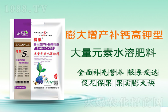 田博士集團(tuán)有限公司【膨大增產(chǎn)補(bǔ)鈣高鉀型大量元素水溶肥料13-6-40+TE-得果】?jī)?yōu)勢(shì)