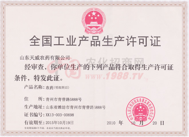 山東天威農(nóng)藥有限公司和青州市奧諾農(nóng)化有限公司是國家發(fā)改委、農(nóng)業(yè)部農(nóng)藥、肥料定點生產(chǎn)企業(yè);是國家農(nóng)業(yè)部農(nóng)藥檢定所農(nóng)藥科學與管理理事單位。