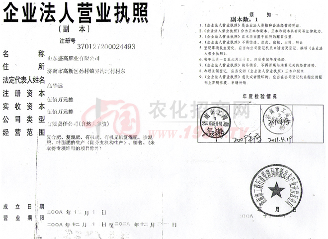 證書名稱:肥料正式登記證 發(fā)證機(jī)構(gòu):山東省農(nóng)業(yè)廳