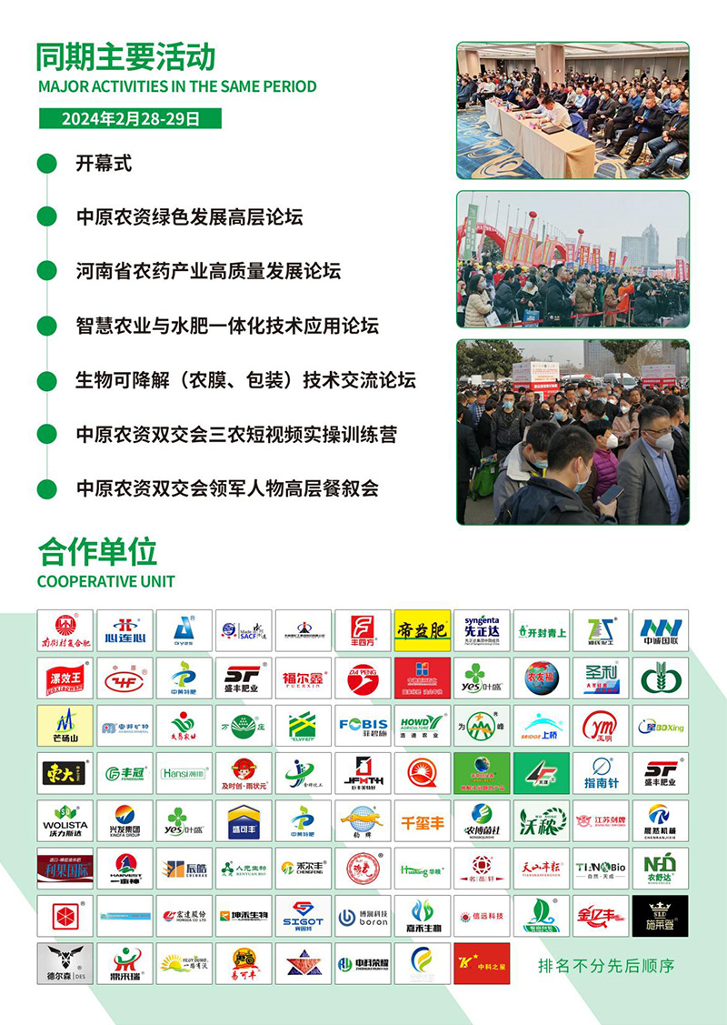 以上就是2024第21屆中原農(nóng)資雙交會展會亮點的簡單介紹,2月28-29日,讓我們相約鄭州國際會展中心,共聚第二十一屆中原農(nóng)資雙交會!